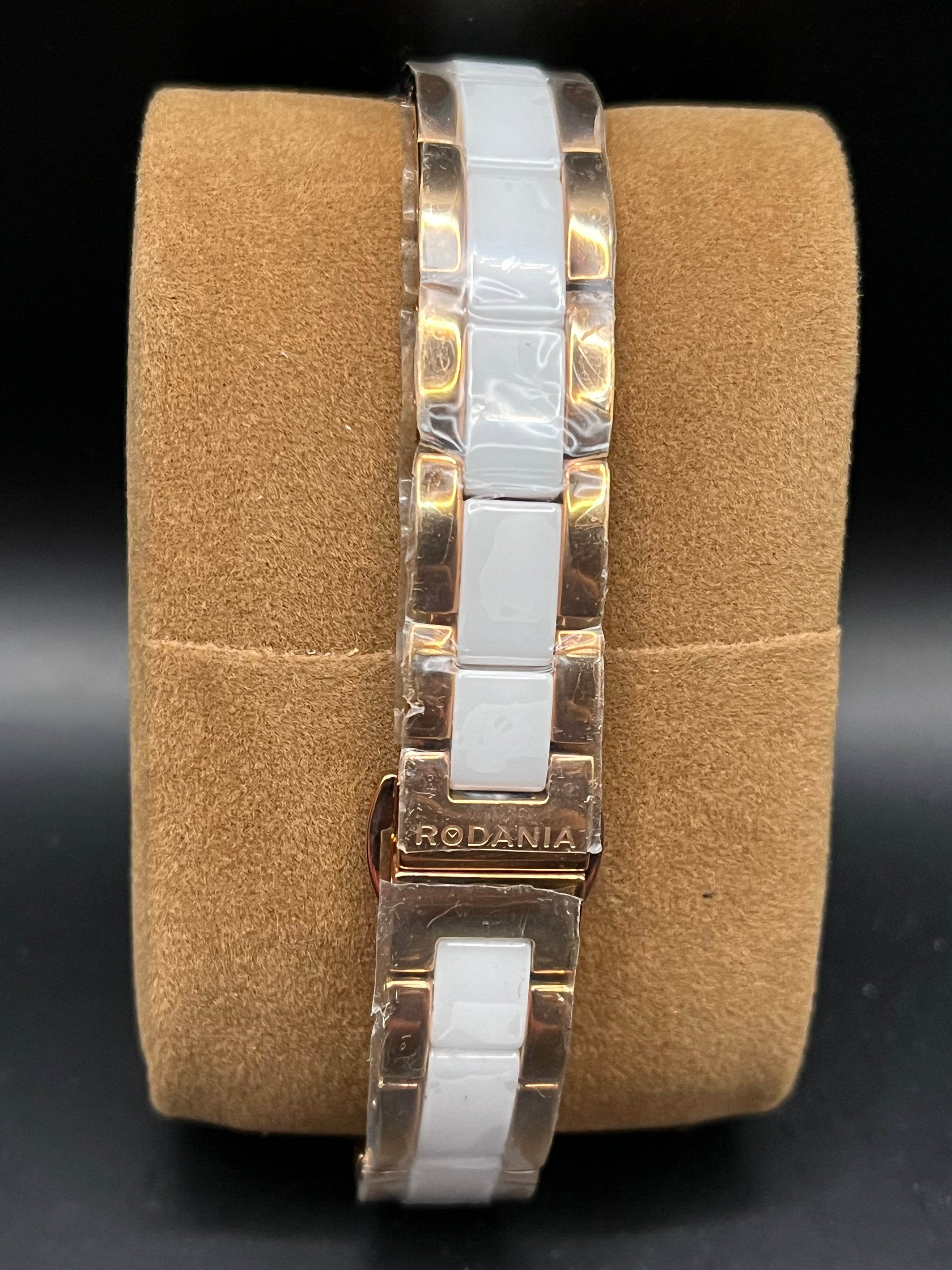 - Armband: roestvrij staal met gold pvdcoating met witte keramische schakels in het midden.